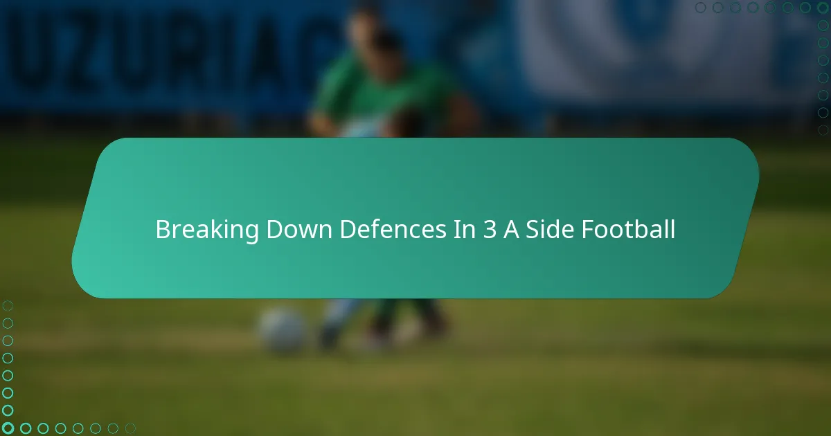 Breaking down defences in 3-a-side football requires a keen understanding of various defensive formations and the ability to adapt tactics accordingly. By utilising quick passing, effective dribbling, and strategic positioning, players can create numerical advantages and exploit gaps in the defence. However, common mistakes such as overcommitting to individual plays and neglecting team communication can hinder scoring opportunities and overall performance.