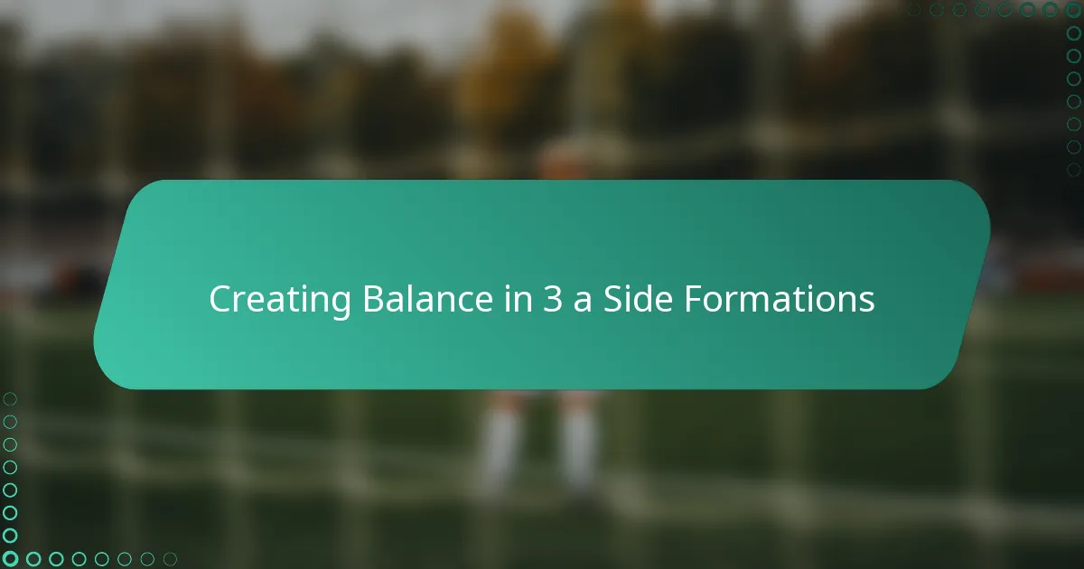 Creating balance in a three-a-side formation is essential for maximising both offensive and defensive effectiveness. By ensuring an equal distribution of responsibilities among players, teams can enhance their teamwork and spatial coverage, allowing for fluid movement and adaptability during the game. Understanding player roles and maintaining effective communication are key to achieving this balance and avoiding common pitfalls that can disrupt team dynamics.