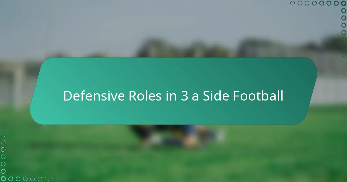 In 3 a side football, defensive roles are crucial for maintaining team structure and preventing goals. Each player has specific responsibilities that contribute to overall defensive effectiveness, including the defender, goalkeeper, and midfielders.