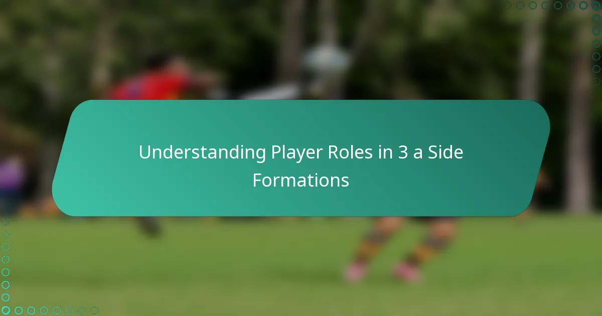 In a 3-a-side football formation, each player has distinct roles that contribute to the team’s overall strategy. The primary roles include a striker, a midfielder, and a defender, each with specific responsibilities that enhance both offensive and defensive play.