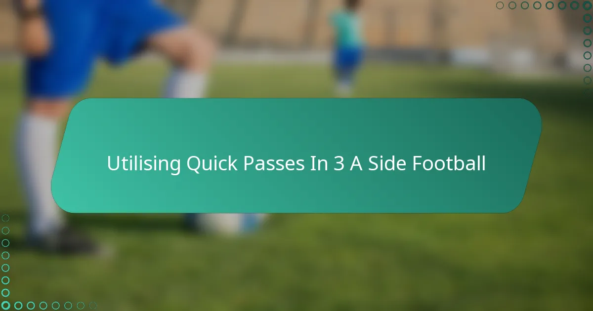 Quick passes in 3 a side football are essential for maintaining possession and creating scoring opportunities in the limited space of small-sided games. By focusing on communication, timing, and spacing, players can enhance their teamwork and decision-making, leading to rapid ball movement that disrupts the opponent’s defence. Mastering this technique not only increases the tempo of the game but also improves a team’s chances of success on the field.